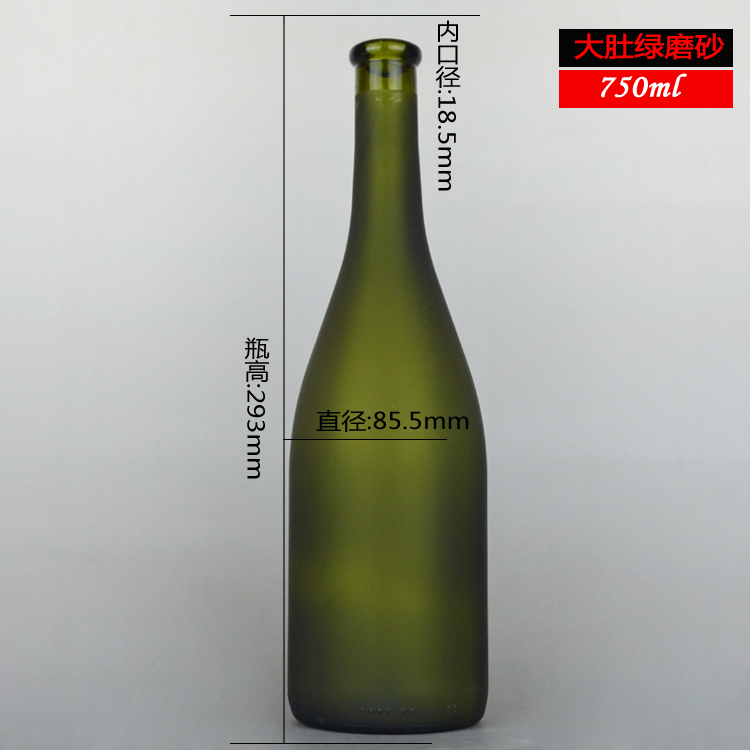 750ml 大肚翻口蒙砂綠紅酒瓶 葡萄酒玻璃瓶